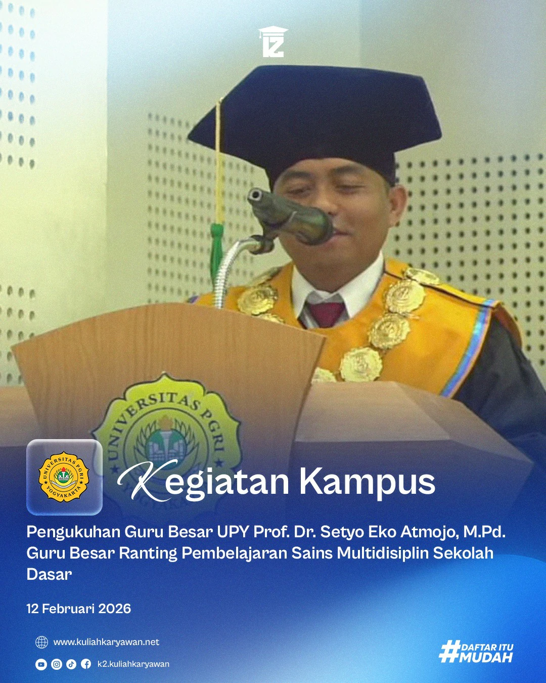 Sebagai rektor, saya sangat bersemangat melihat bagaimana Universitas PGRI Yogyakarta terus berkembang dan